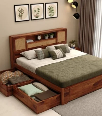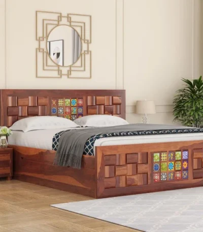 Lesy Sheesham Wood King-Queen Size Bed with Storage