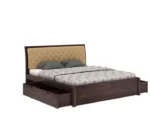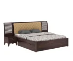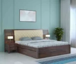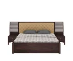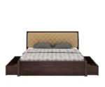 The bed includes discreetly designed drawers on the sides, seamlessly integrated into the bed’s structure for a clean look.