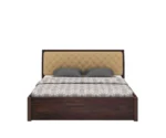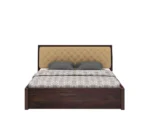 The bed in the image showcases a robust Sheesham wood frame with a rich brown finish.