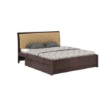 The headboard features a gentle curve with a rattan cane insert, adding a natural and airy feel.