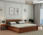 1. Due is a modern furniture unit design with an indented headboard. Oval slots over the headboard add to the beauty of the furniture. With this, the furniture has storage drawer imbibed in the furniture.