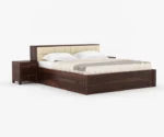 The bed includes discreetly designed drawers on the sides, seamlessly integrated into the bed’s structure for a clean look.
