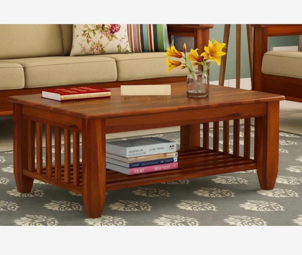 The magnificent Solid Sheesham Wood Coffee Table With Chair Set will elevate your living area. This exquisite item, which is made of finest Sheesham wood, which is renowned for its strength and beautiful texture patterns, is a tribute to classic elegance. The coffee table’s spacious exterior is ideal for storing accessories or serving drinks and snacks. The chair that goes with it provides cozy seating, making it perfect for relaxing or inviting visitors.